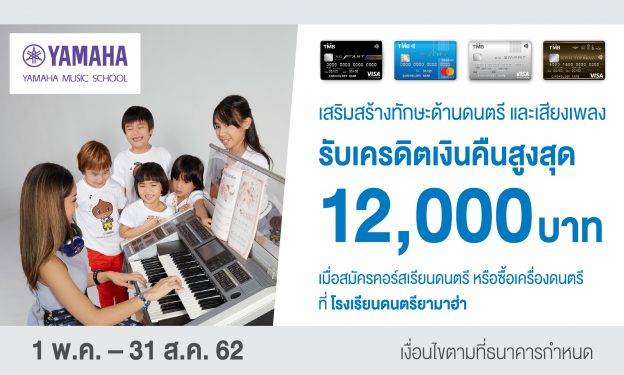 บัตรเครดิตทีเอ็มบี ร่วมกับโรงเรียนดนตรียามาฮ่า ชวนสมัครคอร์สเรียนดนตรีหรือซื้อเครื่องดนตรี รับเครดิตเงินคืน สูงสุด 12,000 บาท
