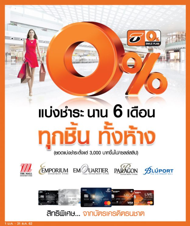 บัตรเครดิตธนชาต ช่วยแบ่งเบาขาช้อป ให้ผ่อนได้ 0% นาน 6 เดือน ทุกชิ้น ทั้งห้าง ###