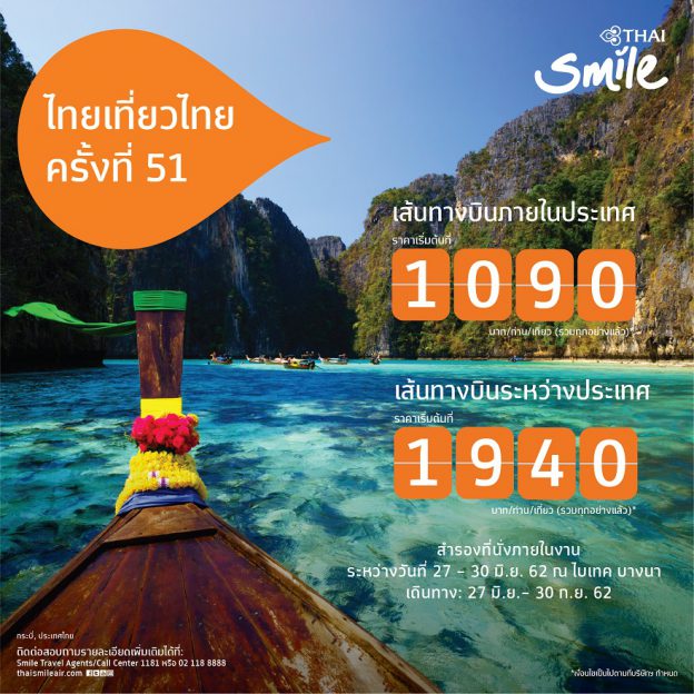 ไทยสมายล์เปิดจองบัตรโดยสารราคาพิเศษ ในงานไทยเที่ยวไทยครั้งที่ 51 ##