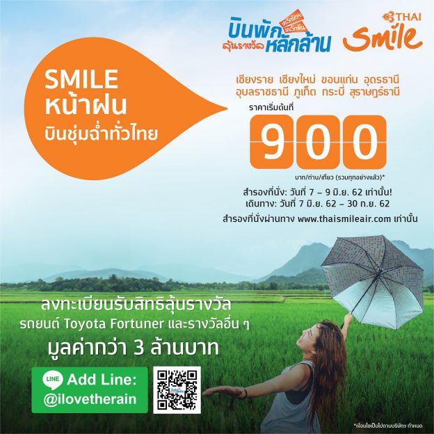 ไทยสมายล์ ส่งโปรโมชั่น ‘Smile หน้าฝน บินชุ่มฉ่ำทั่วไทย’ เริ่มต้นที่ 900 บาท/ท่าน/เที่ยว ###