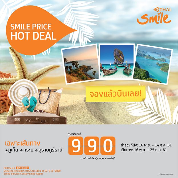 ไทยสมายล์จัดหนัก เส้นทางภูเก็ต กระบี่ สุราษฎร์ เริ่มต้นที่ 990 บาท ##