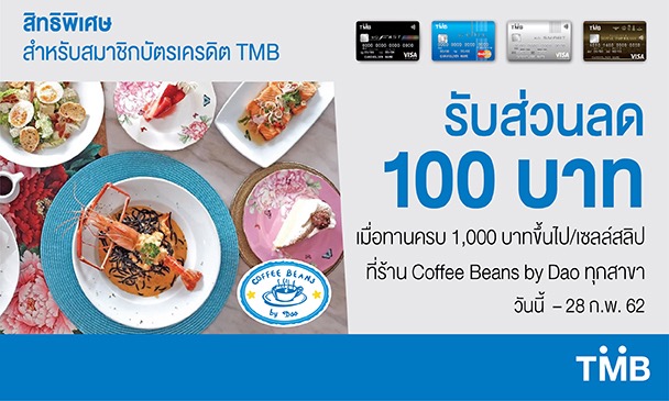 บัตรเครดิตทีเอ็มบี มอบส่วนลด 100 บาท ที่ร้าน Coffee Beans by Dao ##