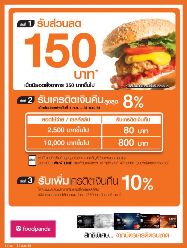 บัตรเครดิตธนชาต สั่งอาหารผ่าน Food Panda รับส่วนลด 150 บาท เมื่อสั่งครบ 350 บาท ##