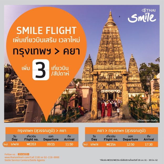 ไทยสมายล์เพิ่มเที่ยวบิน กรุงเทพฯ-คยา-กรุงเทพฯ 3 เที่ยวบิน/สัปดาห์ ##
