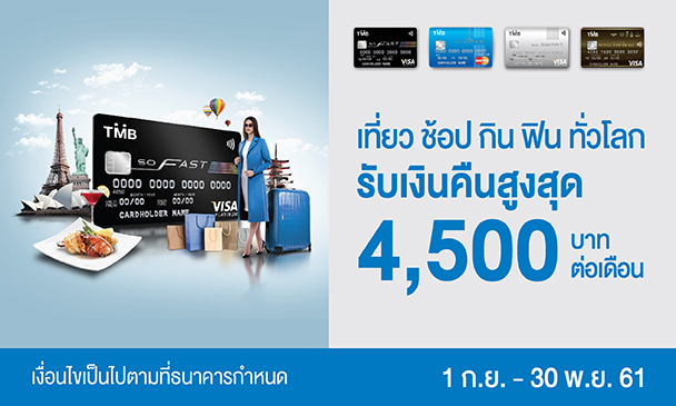 ช้อป กิน ฟินทั่วโลก พร้อมรับเงินคืนสูงสุด 4,500 บาท/เดือน ##