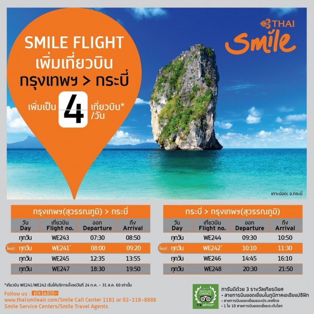 ไทยสมายล์ประกาศเพิ่มเที่ยวบินใน 3 เส้นทาง กระบี่ อุดรธานี และอุบลราชธานี##