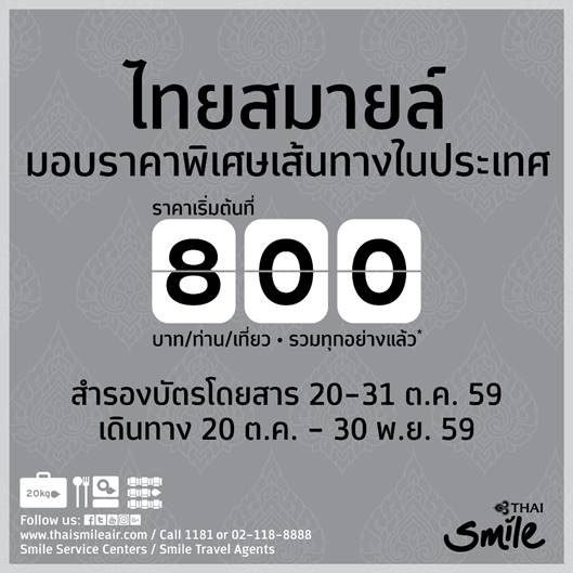 ไทยสมาย์ ยิ้มแฉ่ง…บินเริ่มต้นเพียง 790 บาท…ให้ไว!!!