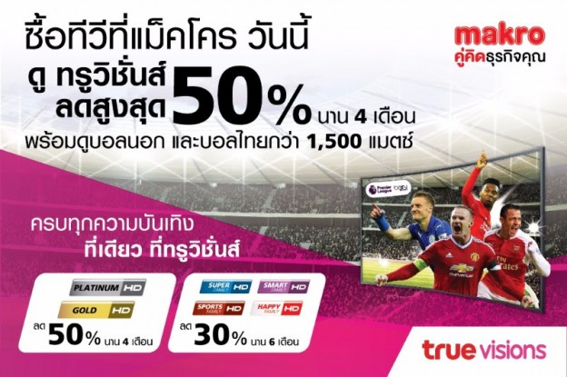 โปรแรงปลายปี !! ซื้อโทรทัศน์ทุกรุ่นที่ “แม็คโคร” รับส่วนลดค่าบริการรายเดือนทรูวิชั่นส์สูงสุด 50% นาน 4 เดือน###