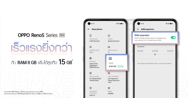 OPPO เปิดตัวเทคโนโลยีใหม่ Memory Expansion Technology เพื่อผู้ใช้ OPPO Reno5 Series 5G