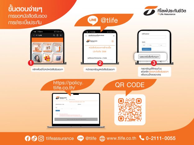ลูกค้า T Life สามารถดาวน์โหลด “หนังสือรับรองการชำระเบี้ยประกันภัย ปี 2568” ผ่าน 2 ช่องทางออนไลน์ได้แล้ววันนี้