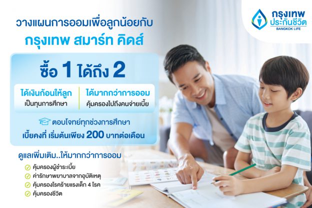 กรุงเทพประกันชีวิต ออก “กรุงเทพ สมาร์ท คิดส์” ซื้อ 1 ได้ถึง 2 ตอบโจทย์แผนสร้างกองทุนการศึกษาเพื่ออนาคตลูก
