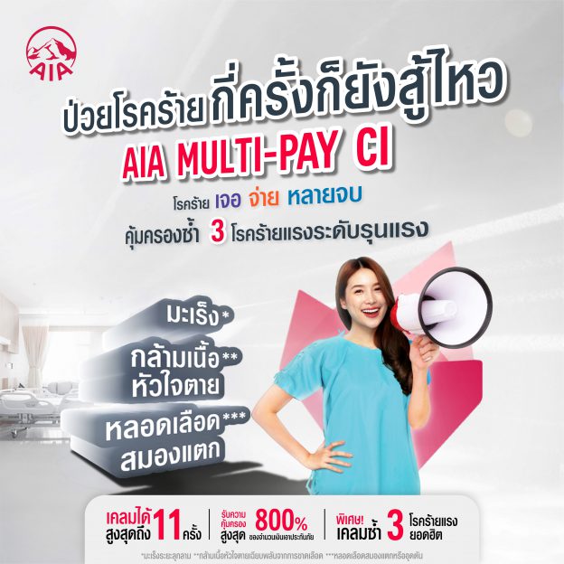 ป่วยโรคร้ายกี่ครั้งก็ยังสู้ไหว…เอไอเอ ประเทศไทย เปิดตัวสัญญาเพิ่มเติมโรคร้ายแรงแบบจ่ายหลายครั้ง (AIA Multi-Pay CI)