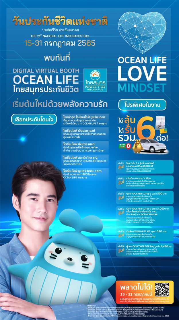 OCEAN LIFE ไทยสมุทร ชวนคนไทยเริ่มต้นใหม่ด้วยพลังความรักผ่านแบบประกันโดนใจ พร้อมโปรแรงแห่งปีในงาน “วันประกันชีวิตแห่งชาติ ครั้งที่ 21” ในระบบ Digital Virtual Booth