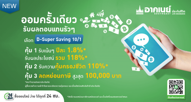 อาคเนย์ประกันชีวิต ร่วมส่งเสริมการออม เปิดตัว “ดี-ซูเปอร์ เซฟวิ่ง 10/1” จ่ายเบี้ยครั้งเดียว คุ้ม 3 ต่อ ง่ายๆ แค่คลิก