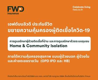 FWD ประกันชีวิต ห่วงใยลูกค้า ขยายความคุ้มครองกรณีติดเชื้อโควิด-19 ครอบคลุมการรักษาแบบ Home Isolation และ Community Isolation