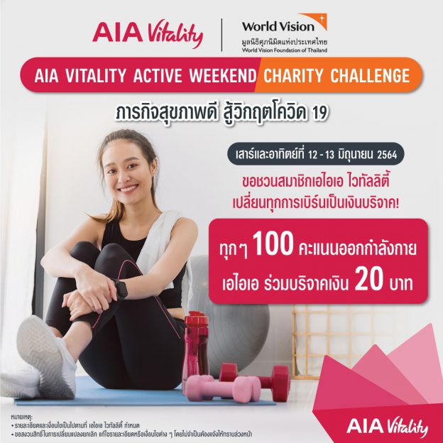 เอไอเอ ประเทศไทย ร่วมกับกลุ่มบริษัทเอไอเอ จัดกิจกรรม… “AIA Vitality Active Weekend Charity Challenge ภารกิจสุขภาพดี สู้วิกฤตโควิด 19” ช่วยประเทศไทย-อินเดีย