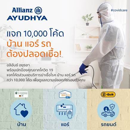 อลิอันซ์ อยุธยา แจกโค้ดส่วนลดบริการฆ่าเชื้อโรค บ้าน แอร์ รถ กว่า 10,000 โค้ด เพื่อดูแลความปลอดภัยรอบตัวคุณ