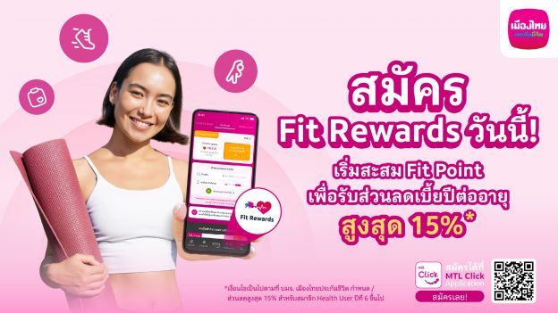 เมืองไทยประกันชีวิต เปิดตัวฟีเจอร์ใหม่ “Fit Rewards” บนแอปพลิเคชัน MTL Click พร้อมให้แลกคะแนน Fit Point เป็นส่วนลดค่าเบี้ยประกันภัย เดินหน้าสนับสนุนให้ทุกคนมีสุขภาพดีอย่างยั่งยืน