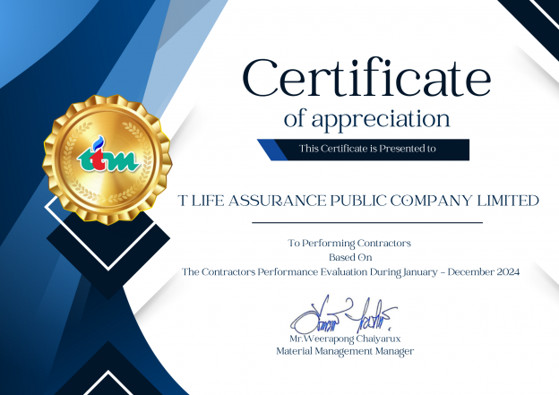 ที ไลฟ์ ประกันชีวิต ได้รับประเมินผลเกรด A จากการดำเนินงานประจำปี 2567 จากบริษัท ทรานส์ ไทย–มาเลเซีย (ประเทศไทย) จำกัด