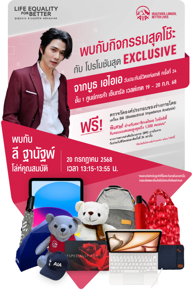 เอไอเอ ประเทศไทย จัดทัพผลิตภัณฑ์ประกันประกันสุขภาพและโรคร้ายแรง พร้อมด้วยประกันชีวิตควบการลงทุน (ยูนิต ลิงค์) ร่วมงาน วันประกันชีวิตแห่งชาติ ครั้งที่ 24 ภายใต้คอนเซ็ปต์ “Life Equality For Better – สุขคู่ขนาน สานทุกชีวิต พลิกอนาคต”