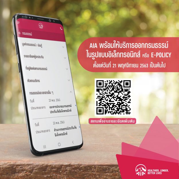 เอไอเอ ประเทศไทย เปิดบริการออกกรมธรรม์ในรูปแบบอิเล็กทรอนิกส์ (e-Policy) ตอบรับชีวิตยุคดิจิทัล