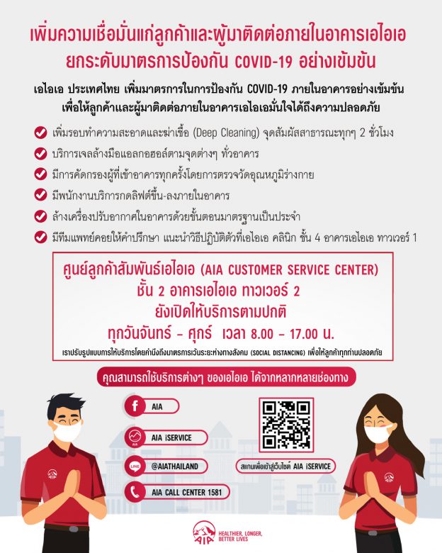 AIA Call Center 02-353-8483 … พร้อมให้บริการลูกค้าทำธุรกรรมช่วงโควิด-19 แพร่ระบาด !!