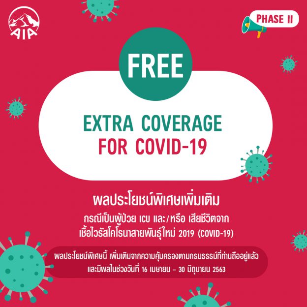 เอไอเอ ประเทศไทย ขยายระยะเวลามอบผลประโยชน์พิเศษเพิ่มเติมแก่ผู้เอาประกันภัย ช่วง(COVID-19)