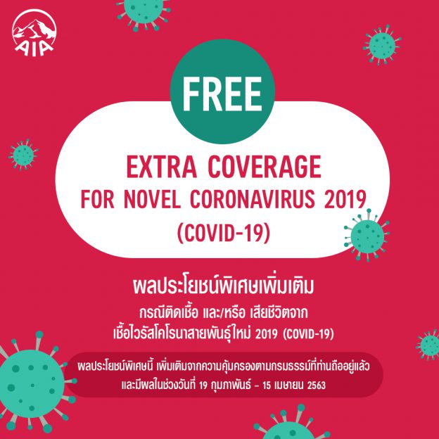 เอไอเอ ประเทศไทย มอบผลประโยชน์พิเศษเพิ่มเติมแก่ผู้เอาประกันภัยเอไอเอ กรณีติดเชื้อและ/หรือเสียชีวิตจากไวรัสโคโรนาสายพันธุ์ใหม่ 2019 (COVID-19)