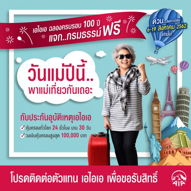 เอไอเอ ประเทศไทย มอบกรมธรรม์อุบัติเหตุฟรี ในช่วงเทศกาลวันแม่ ไม่จำกัดจำนวน !!