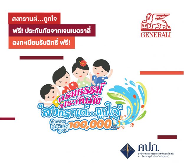 สงกรานต์นี้ ขับขี่ปลอดภัย เจนเนอราลี่ห่วงใยคุณ เจนเนอราลี่ มอบความคุ้มครองอุบัติเหตุ สูงสุด 100,000 บาท ###