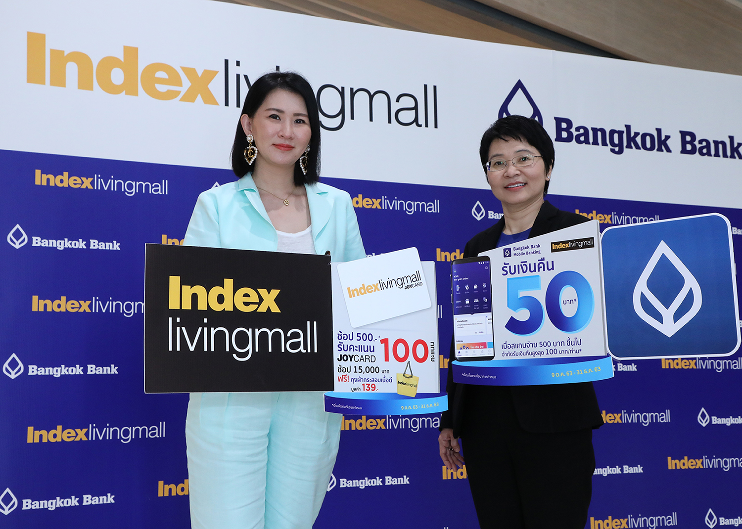 9 พฤศจิกายน 2563 : กฤษชนก ปัทมสัตยาสนธิ กรรมการผู้จัดการ บริษัท อินเด็กซ์ ลิฟวิ่งมอลล์ จำกัด (มหาชน) (Index Living Mall) จับมือกับพันธมิตร ปรัศนี อุยยามะพันธ์ ผู้ช่วยผู้จัดการใหญ่ ธนาคารกรุงเทพ จำกัด (มหาชน) ร่วมเปิดประสบการณ์ช้อปสินค้าเรื่องบ้านที่ดีที่สุดเหนือใคร มอบความ “สะดวก สบาย ปลอดภัย” แบบ Touchless Society (ไร้สัมผัส) ตอบรับไลฟ์สไตล์ชีวิตวิถีใหม่ New Normal ให้ทุกๆ การช้อปเฟอร์นิเจอร์ ของใช้ภายในบ้าน ของตกแต่งบ้าน เครื่องใช้ไฟฟ้า ที่ อินเด็กซ์ ลิฟวิ่งมอลล์ เพียงแค่สแกน QR Code จ่ายผ่าน โมบายแบงก์กิ้งธนาคารกรุงเทพ