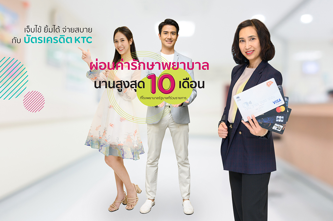 6 มกราคม 2563 : “เคทีซี” หรือ บริษัท บัตรกรุงไทย จำกัด (มหาชน) โดย สิรีรัตน์ คอวนิช ผู้อำนวยการ-ธุรกิจบัตรเครดิต มอบความอุ่นใจให้สมาชิกบัตรเครดิตเคทีซี ด้วยบริการผ่อนชำระค่ารักษาพยาบาลนานสูงสุด 10 เดือน ที่โรงพยาบาลรัฐบาลที่ร่วมรายการทั่วประเทศ เมื่อชำระค่ารักษาพยาบาลผ่านบัตรฯ ตั้งแต่ 3,000 บาทขึ้นไปต่อเซลส์สลิป โดยสามารถเลือกรับบริการผ่อนชำระอัตราดอกเบี้ยและค่าธรรมเนียมการใช้วงเงิน 0.69% ต่อเดือน นานสูงสุด 10 เดือน หรืออัตราดอกเบี้ยและค่าธรรมเนียมการใช้วงเงิน 0% นานสูงสุด 10 เดือน เมื่อใช้คะแนน KTC FOREVER จำนวน 50% ของยอดใช้จ่ายผ่านบัตรฯ