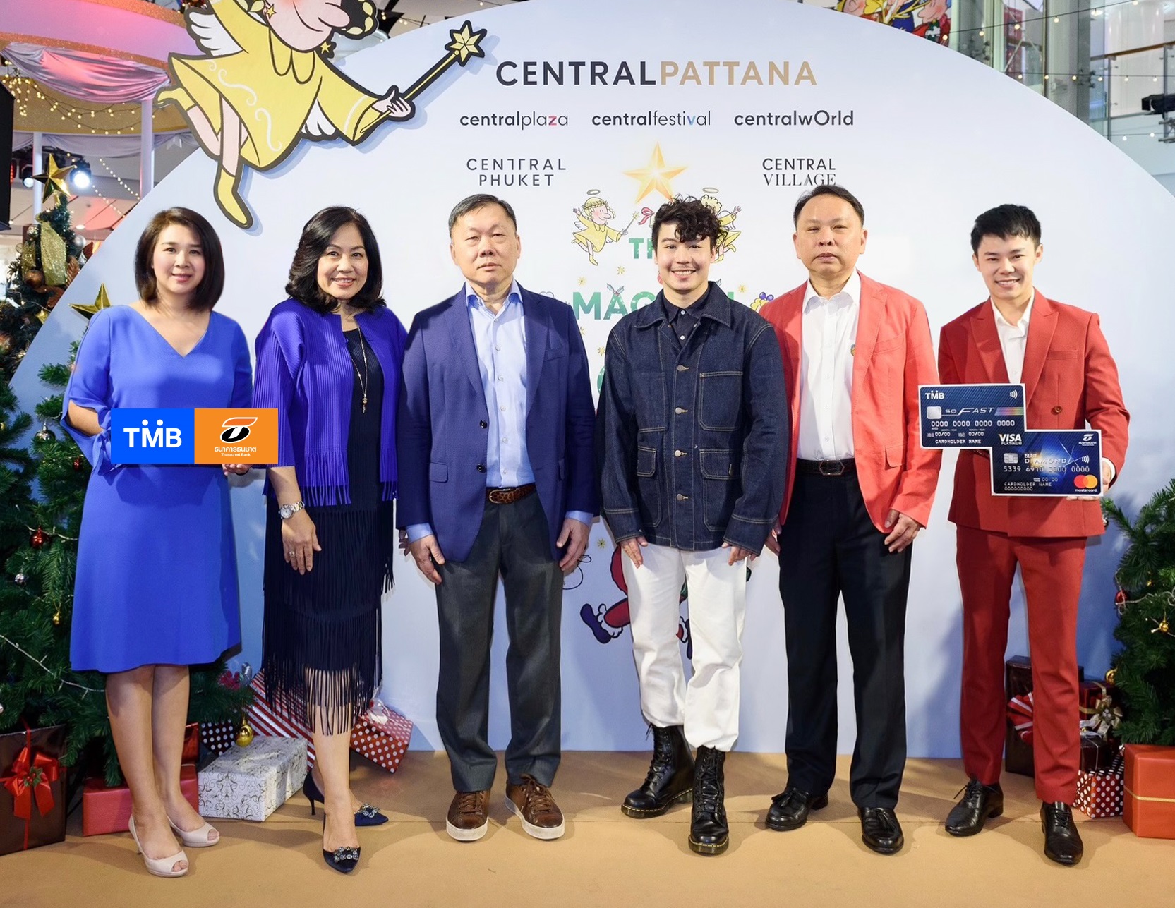 18 พฤศจิกายน 2563 : พัชรี กมลเวชช (ซ้ายสุด) เจ้าหน้าที่บริหารการตลาดลูกค้าบุคคล-ผลิตภัณฑ์บัตรเครดิตและสินเชื่อ ทีเอ็มบี หรือ ธนาคารทหารไทย จำกัด (มหาชน) ร่วมกับ ดร. ณัฐกิตติ์ ตั้งพูลสินธนา (ที่ 2 จากขวา) ผู้ช่วยกรรมการผู้จัดการใหญ่สายงานการตลาด บริษัท เซ็นทรัลพัฒนา จำกัด (มหาชน) มอบสิทธิพิเศษให้ลูกค้าบัตรเครดิตทีเอ็มบี และบัตรเครดิตธนชาต ช้อปปิ้งอย่างคุ้มค่าในบรรยากาศแห่งการเฉลิมฉลองช่วงเทศกาลคริสต์มาสกับแคมเปญ “The Magical Lights 2021 มหัศจรรย์แสงแห่งความสุข”