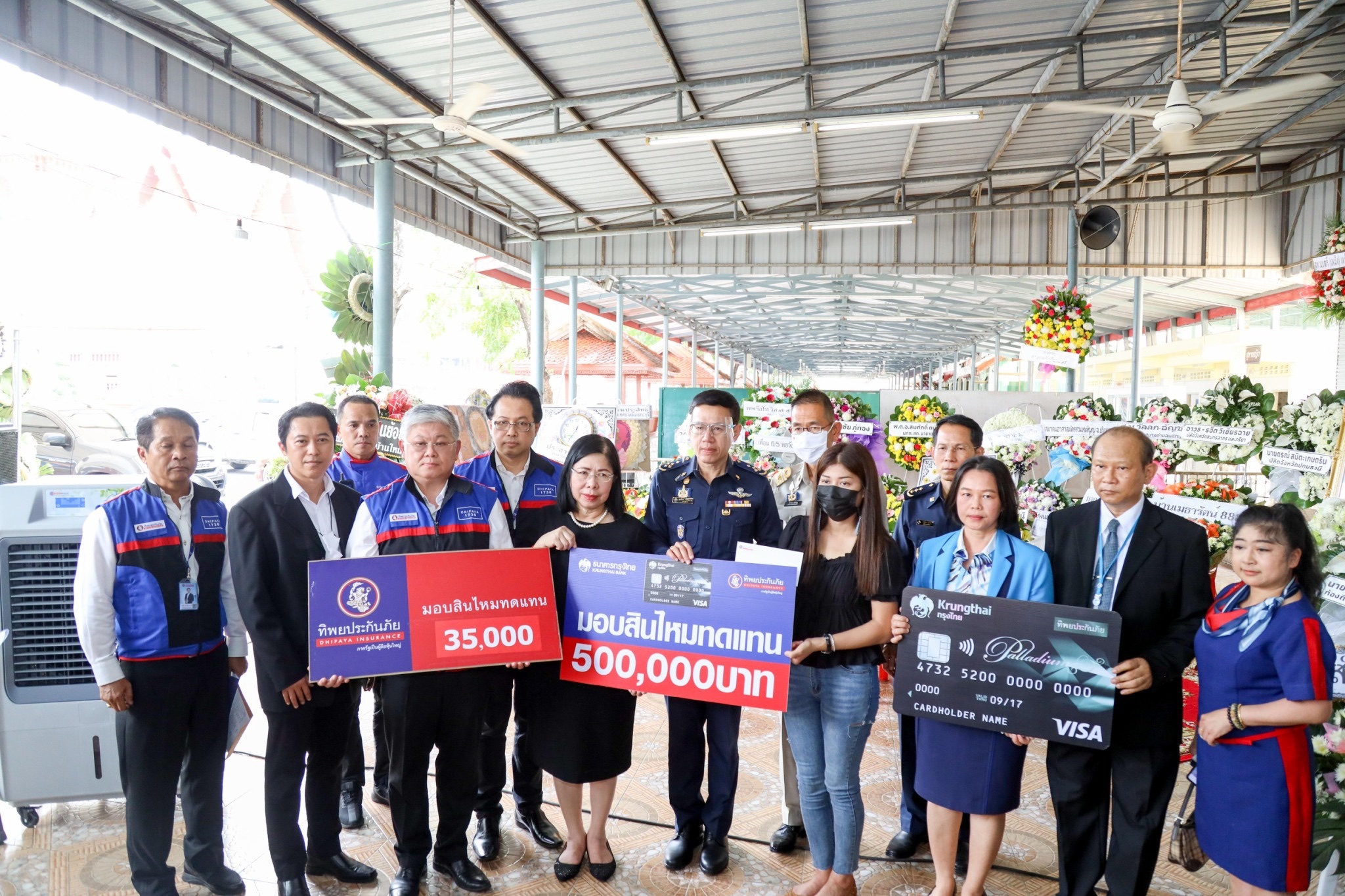 ส่วนผู้เสียชีวิตที่เป็นผู้โดยสารอีก 1 ราย ซึ่งเป็นภรรยาของผู้ขับขี่รถยนต์คันดังกล่าว จะได้รับค่าสินไหมทดแทน จำนวน 700,000 บาท จากกรมธรรม์ประกันภัยรถภาคบังคับ (พ.ร.บ.) จำนวน 500,000 บาท และสัญญาแนบท้ายประกันอุบัติเหตุส่วนบุคคล (PA) จำนวน 200,000 บาท โดยเลขาธิการ คปภ. และนายชัยวัฒน์ ชื่นโกสุม ผู้ว่าราชการจังหวัดปทุมธานี ร่วมเป็นสักขีพยาน และกล่าวแสดงความเสียใจพร้อมให้กำลังใจแก่ครอบครัวของผู้เสียชีวิต ทั้ง 5 ราย