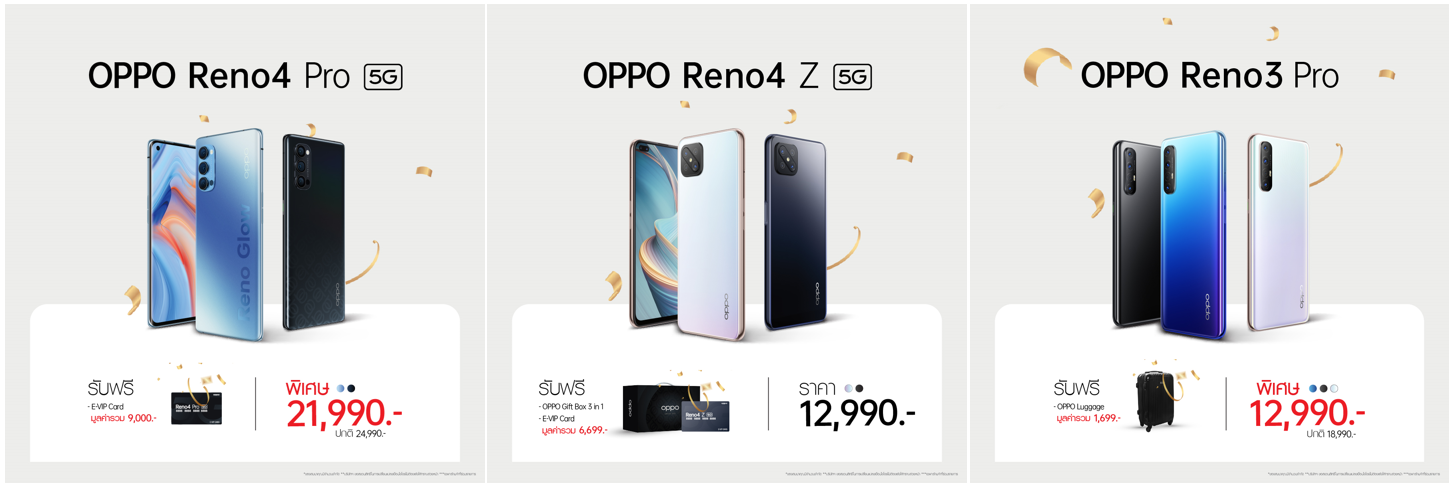 OPPO Reno4 Z 5G อีกหนึ่งสมาร์ทโฟน 5G รุ่นเล็กราคาสุดคุ้ม ให้คุณอัปเดตไลฟ์สไตล์และเชื่อมต่อกันได้แบบเรียลไทม์ รองรับเครือข่าย 5G ได้สองโหมดทั้ง SA/NSA พร้อมหน้าจอ 120Hz Silky Display ให้ภาพที่นุ่มนวล ลื่นไหล สมจริงยิ่งขึ้น ตอบโจทย์ทุกการถ่ายภาพด้วยกล้อง 6 ตัว เอาอยู่ทุกช็อตทั้งเซลฟี่และ พอร์ตเทรตที่สวยชัดเป็นธรรมชาติ ในราคา 12,990 บาท พิเศษสุด รับฟรี! OPPO Gift Box 3 in 1 และ E-VIP Card ประกันหน้าจอแตก 1 ปี รวมมูลค่าถึง 6,699 บาท