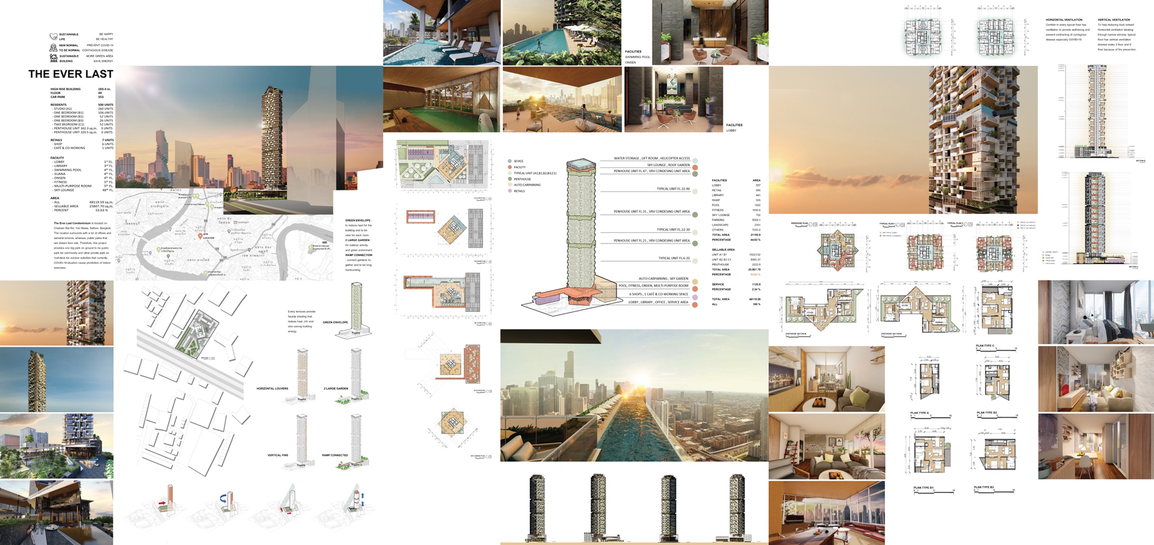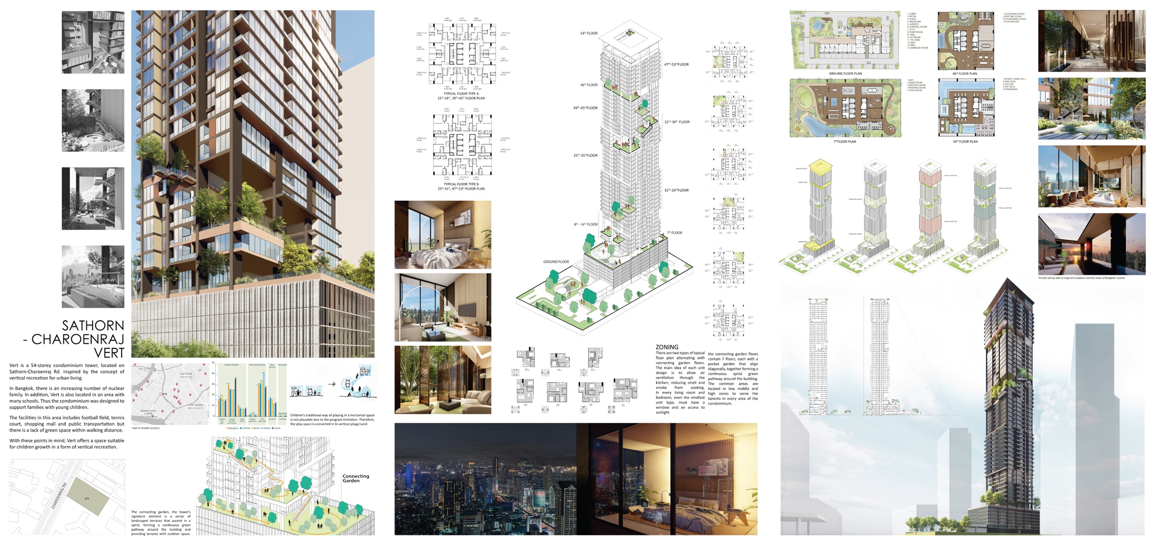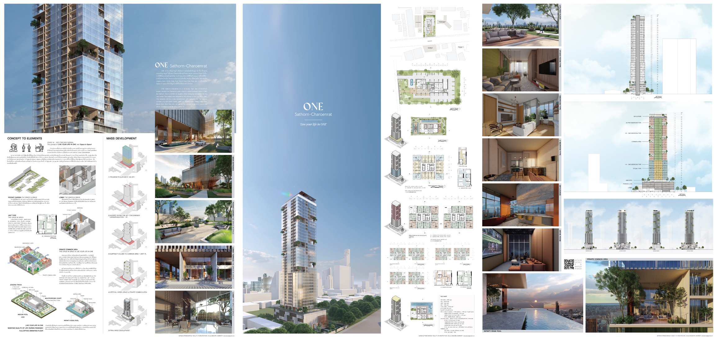 · นางสาวณัฐณิชา แพรสุวัฒน์ศิลป์ ชื่อผลงาน ONE Sathorn - Charoenrat แรงบันดาลใจของผลงานมาจาก การตอบสนองความต้องการของการใช้ชีวิตแบบใหม่ New Normal Concept จะมีส่วนของการแบ่งพื้นที่เล็กในพื้นที่ใหญ่ เพื่อให้มีความเกิดความเป็นส่วนตัวให้กับลูกบ้านที่จะมาใช้งานต่างๆ