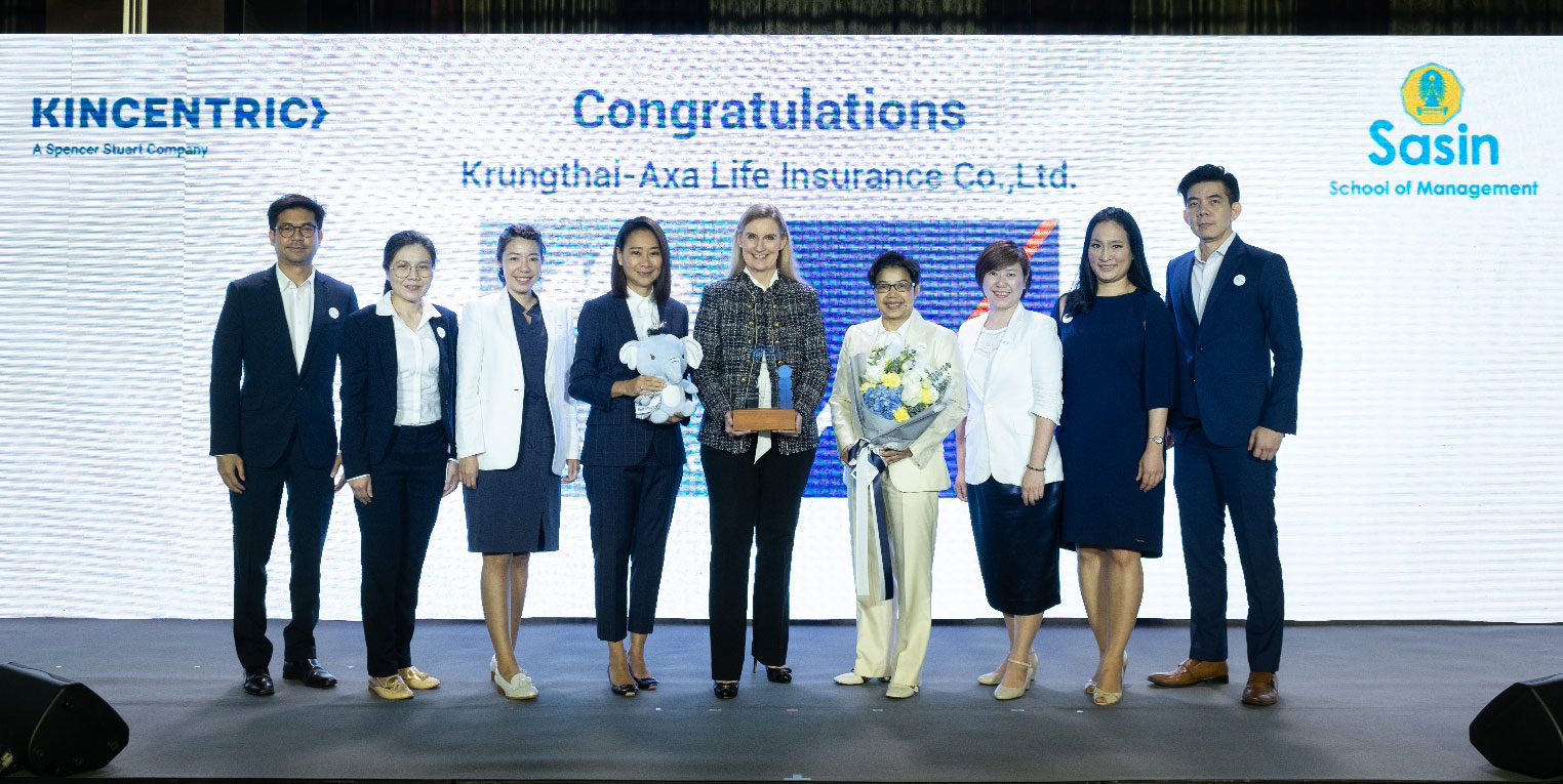 1 ธันวาคม 2563 : บมจ.กรุงไทย-แอกซ่า ประกันชีวิต นำโดย แซลลี่ โอฮาร่า ประธานเจ้าหน้าที่บริหาร (คนที่ 5 จากขวา) และ บุปผาวดี โอวรารินท์ ประธานเจ้าหน้าที่บริหาร ฝ่ายทรัพยากรบุคคล (คนที่ 4 จากขวา) รับรางวัล “Thailand Best Employers 2020” สุดยอดนายจ้างดีเด่นแห่งประเทศไทย ประจำปี 2563 จากบริษัท คินเซนทริค ประเทศไทย โดยกรุงไทย-แอกซ่า ประกันชีวิต เป็นบริษัทประกันชีวิต เพียงแห่งเดียวในอุตสาหกรรมประกันชีวิต และอุตสาหกรรมทางการเงินที่ได้รับรางวัลอันทรงเกียรตินี้