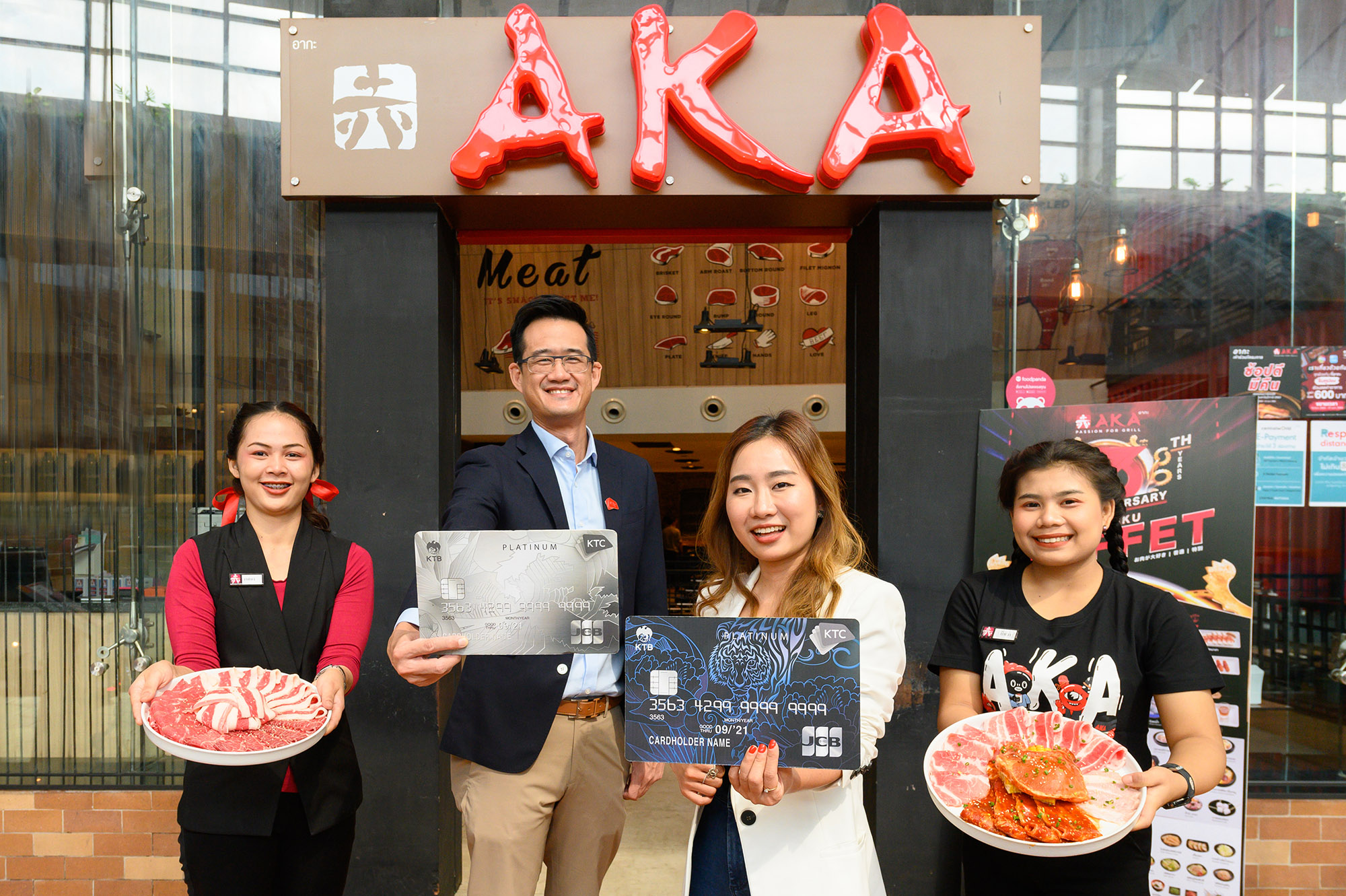 4 ธันวาคม 2563 : ธศพงษ์ รังควร ผู้อำนวยการ – ธุรกิจบัตรเครดิต “เคทีซี” หรือ บริษัท บัตรกรุงไทย จำกัด (มหาชน) ร่วมกับ พฤษภา พฤกษานุศักดิ์ ผู้จัดการความสัมพันธ์สถาบันการเงิน บริษัท เจซีบี อินเตอร์เนชั่นแนล (ประเทศไทย) จำกัด มอบสิทธิพิเศษให้สมาชิกบัตรเครดิตเคทีซี เจซีบี แพลตินัมทุกประเภท อิ่มอร่อยคุ้มค่ากว่า เพียงใช้จ่ายผ่านบัตรฯ ครบ 500 บาทขึ้นไปต่อเซลส์สลิป รับส่วนลด 100 บาท (1 สิทธิ์ / เซลส์สลิป) ที่ร้านอาหารญี่ปุ่น AKA ทุกสาขาทั่วประเทศ (จำกัด 2,000 สิทธิ์ / เดือน / ทุกสาขา) ตั้งแต่วันที่ 1 พฤศจิกายน 2563 – 31 มกราคม 2564 ![]()