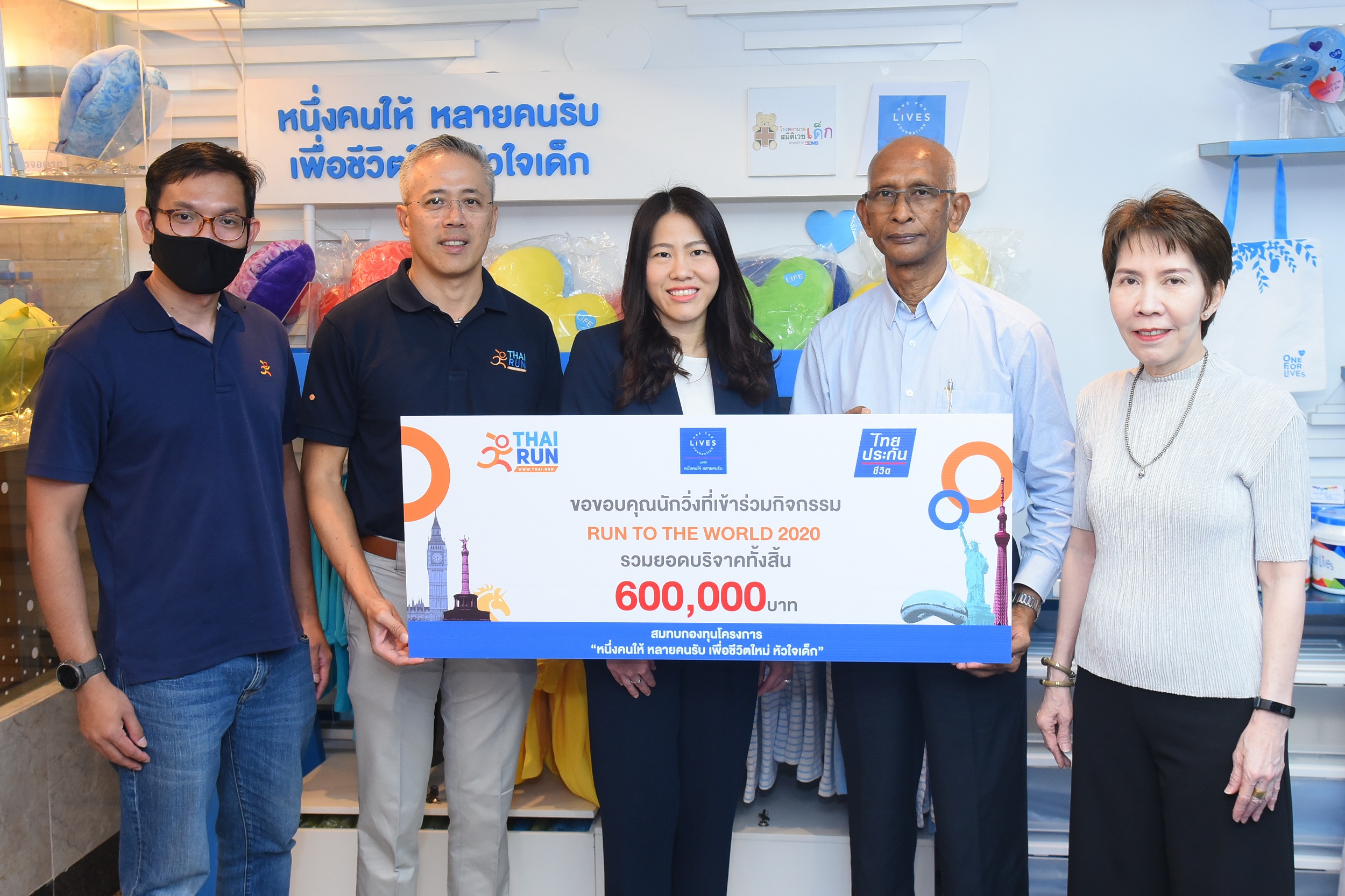 8 ธันวาคม 2563 : ฐิติมา เลี้ยงพาณิชย์ ผู้อํานวยการฝ่าย กลุ่มสื่อสารองค์กรและกลุ่มองค์กรสัมพันธ์ ผู้แทนบริษัท ไทยประกันชีวิต จำกัด (มหาชน) และ กมล สิริชัน Co-founder & COO บริษัท ไทยดอทรัน จำกัด (ThaiRun) ร่วมมอบเงินบริจาคจำนวน 600,000 บาท จากกิจกรรม Virtual Run : Run to the World 2020 แก่นายไพโรจน์ เผือกประพัฒน์ กรรมการและผู้จัดการ มูลนิธิหนึ่งคนให้ หลายคนรับ เพื่อสมทบโครงการ “หนึ่งคนให้ หลายคนรับ เพื่อชีวิตใหม่ หัวใจเด็ก” สำหรับเป็นค่าใช้จ่ายผ่าตัดผู้ป่วยเด็กโรคหัวใจพิการแต่กำเนิดที่ขาดแคลนโอกาสในการรักษา ณ อาคารไทยประกันชีวิต สำนักงานใหญ่ ![]()