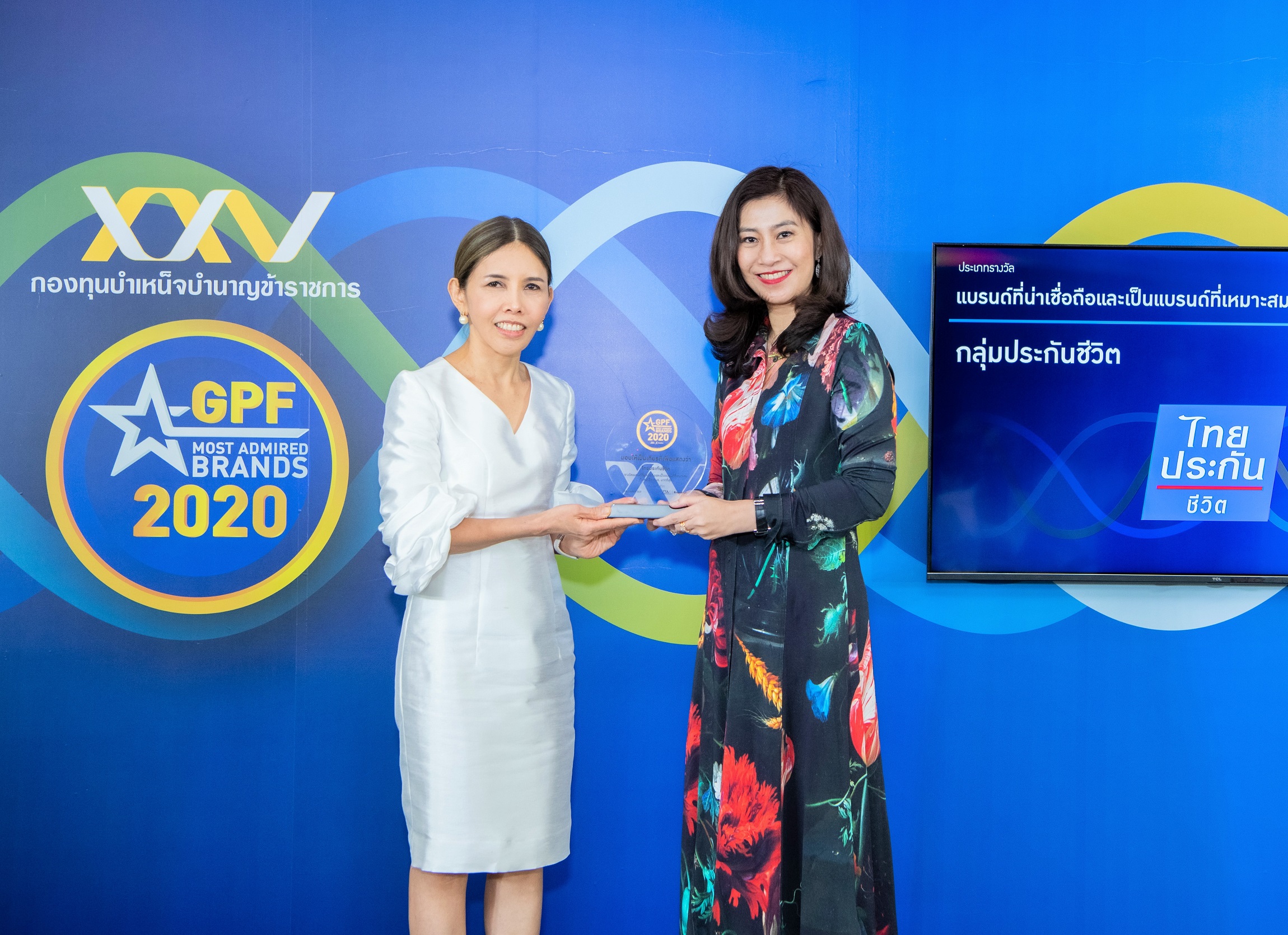 21 ธันวาคม 2563 : ดร.ศรีกัญญา ยาทิพย์ เลขาธิการ คณะกรรมการกองทุนบำเหน็จบำนาญข้าราชการ (กบข.) มอบโล่รางวัลแบรนด์ที่น่าเชื่อถือและเป็นแบรนด์ที่เหมาะสมกับสมาชิก กบข. มากที่สุด หรือ GPF Most Admired Brands แก่ วรางค์ ไชยวรรณ กรรมการและรองกรรมการผู้จัดการใหญ่อาวุโส บริษัท ไทยประกันชีวิต จำกัด (มหาชน) ในฐานะแบรนด์ที่สมาชิก กบข.ให้ความไว้วางใจสูงสุด จากผลสำรวจความพึงพอใจและความชื่นชอบของสมาชิก กบข.ที่มีต่อสินค้าและบริการ กลุ่มประกันชีวิต ณ สำนักงาน กบข. อาคารอับดุลราฮิม ![]()