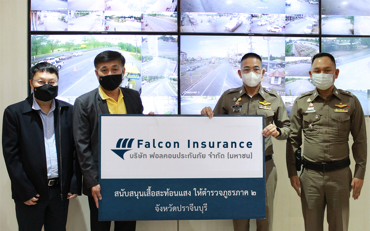 28 ธันวาคม 2563 : โสภา กาญจนรินทร์ ประธานเจ้าหน้าที่บริหาร บริษัท ฟอลคอนประกันภัย จำกัด (มหาชน) มอบหมายให้ คุณอำนาจ มาตรง ที่ปรึกษากฎหมายและกำกับดูแลองค์กร และคุณโสภณ อุดมพฤกษา ผู้อำนวยการอาวุโสฝ่ายธุรกิจประกันอุบัติเหตุและสุขภาพ เป็นตัวแทนบริษัทฯ ร่วมโครงการป้องกันและลดอุบัติเหตุทางถนนในช่วงเทศกาลปีใหม่ 2564