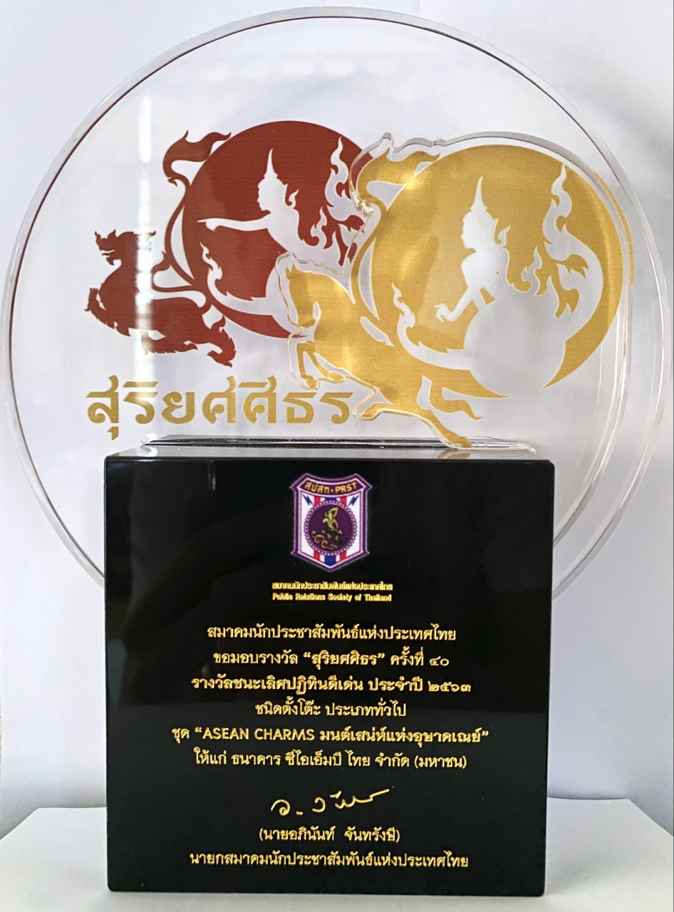 29 ธันวาคม 2563 : ธนาคาร ซีไอเอ็มบี ไทย ได้รับรางวัลชนะเลิศปฏิทินดีเด่น ประจำปี 2563 รางวัล “สุริยศศิธร” ครั้งที่ 40 จัดโดยสมาคมนักประชาสัมพันธ์แห่งประเทศไทย โดยชนะเลิศ “ปฏิทินชนิดตั้งโต๊ะ ประเภททั่วไป” จากการออกแบบภายใต้แนวคิด “ASEAN CHARMS มนต์เสน่ห์แห่งอุษาคเณย์” ในฐานะที่ธนาคารเป็นสมาชิกกลุ่มซีไอเอ็มบี กลุ่มการเงินระดับอาเซียน จึงนำเสนอมนต์เสน่ห์แห่งสีสันของอาเซียน
