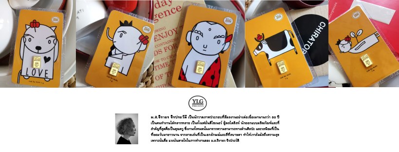 29 ธันวาคม 2563 : วายแอลจีพรีเชียส ผู้จัดจำหน่ายทองคำแท่ง 99.99% และทองรูปพรรณ 96.5% คุณภาพและได้มาตรฐาน ภายใต้เครือ YLG Group ได้ออกคอลเลกชันการ์ดทองคำแท่ง 96.5% ใหม่ ต้อนรับปีใหม่ 2564 ปีฉลูมหาเฮง ออกแบบผลงานสุดเอ็กซ์คูลซีฟโดย ม.ล.จิราธร จิรประวัติ (ครูโต) ศิลปินชื่อดังผู้ซึ่งสร้างสรรค์ผลงานด้านศิลปะมายาวนานอย่างต่อเนื่องกว่า 30 ปี มีลายเส้นอันเป็นเอกลักษณ์ และใช้สีสบายตา ทำให้ได้เราสัมผัสได้ถึงความใส่ใจในรายละเอียด และสัมผัสได้ถึงความสุขผ่านผลงานการออกแบบของครูโตทุกครั้ง