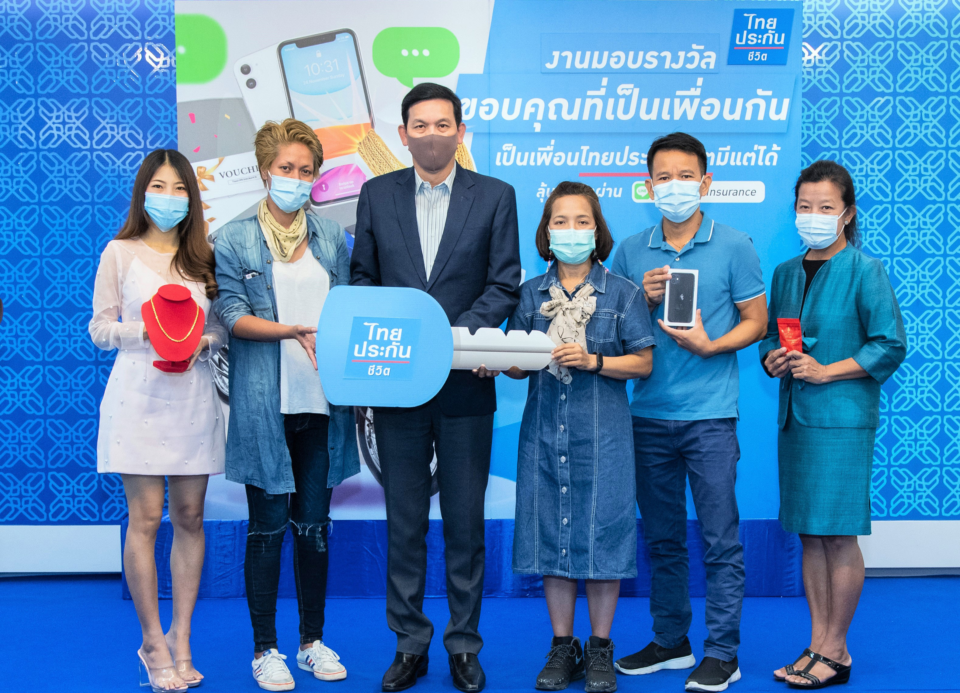 4 มกราคม 2564 : อังกูร ศรีกัลยาณบุตร รองกรรมการผู้จัดการใหญ่ และ Chief Marketing Officer บริษัท ไทยประกันชีวิต จำกัด (มหาชน) มอบรางวัลจากกิจกรรมตอบแบบสอบถามผ่าน LINE Official Account “ThaiLifeInsurance” ครั้งที่2 อาทิ รถจักรยานยนต์ Honda รุ่น All New Wave 125i, Apple iPhone11, ทองรูปพรรณ ฯลฯ ซึ่งเป็นผู้โชคดีจากการจับรางวัลรอบที่ 3 และ 4 ตั้งแต่วันที่ 16-29 พฤศจิกายน 2563 มูลค่ารางวัลตลอดรายการรวมทั้งสิ้น 416,800 บาท ณ อาคารไทยประกันชีวิต สำนักงานใหญ่ ![]()