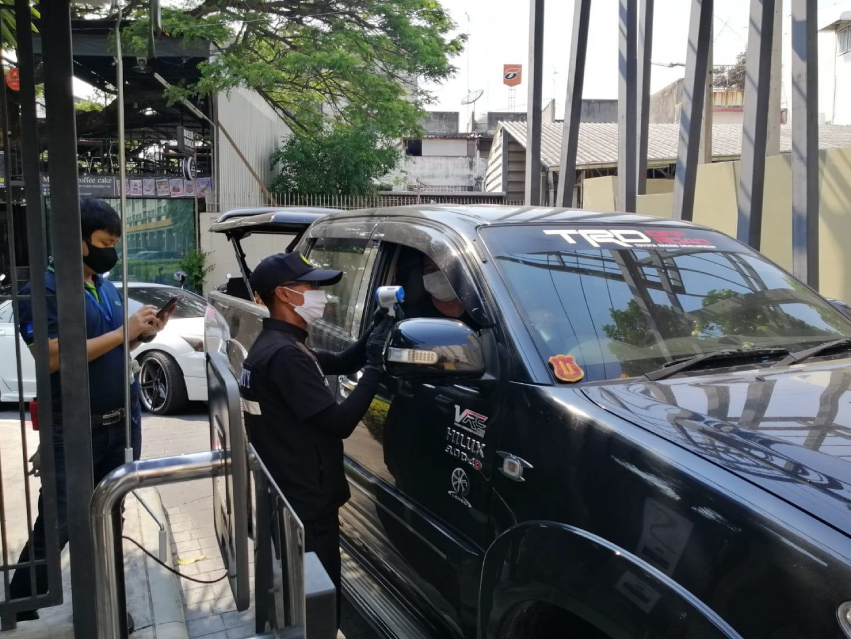 3. การคัดกรองผู้เข้าโครงการอย่างเข้มงวดด้วยการตรวจวัดอุณหภูมิทุกคน จัดทางเข้า-ออก ให้เหลือทางเดียว ขึ้นทะเบียนผู้เข้าพักอาศัยรายใหม่