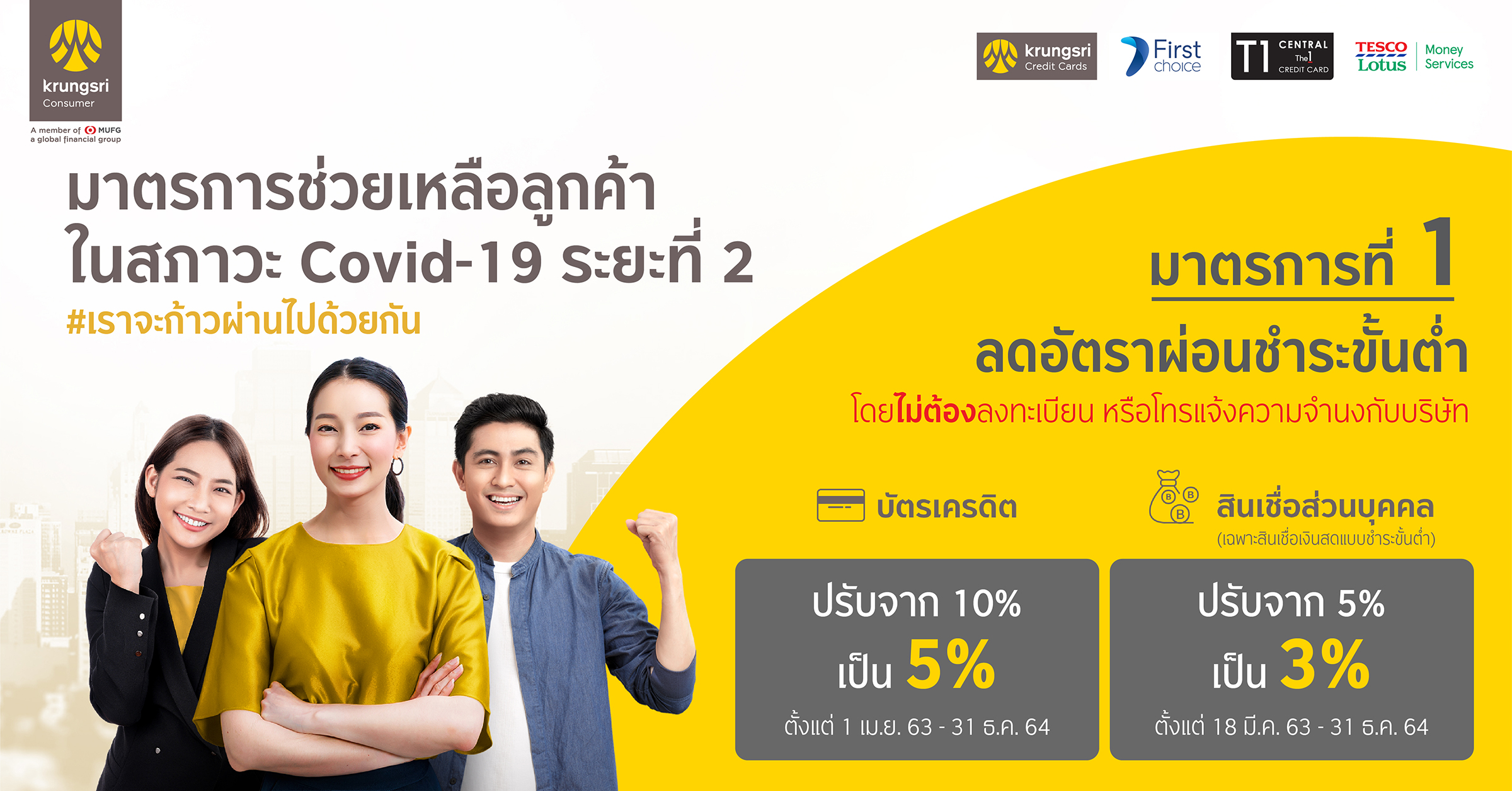 นอกจากนี้ บริษัทยังได้เพิ่มมาตรการช่วยเหลือสำหรับลูกค้าที่มียอดค้างชำระ ด้วยการปรับลดยอดในการผ่อนชำระรายเดือน โดยขยายเวลาในการผ่อนชำระนานสูงสุด 99 เดือนทั้งสำหรับบัตรเครดิต และสำหรับสินเชื่อส่วนบุคคลอีกด้วย โดยลูกค้าสามารถแจ้งความจำนงมายังบริษัท และจะได้รับพิจารณาเป็นรายกรณี เพื่อหาวิธีช่วยแบ่งเบาภาระทางการเงินของลูกค้าร่วมกัน ให้ทุกคนสามารถก้าวผ่านวิกฤติครั้งนี้ไปด้วยกัน”