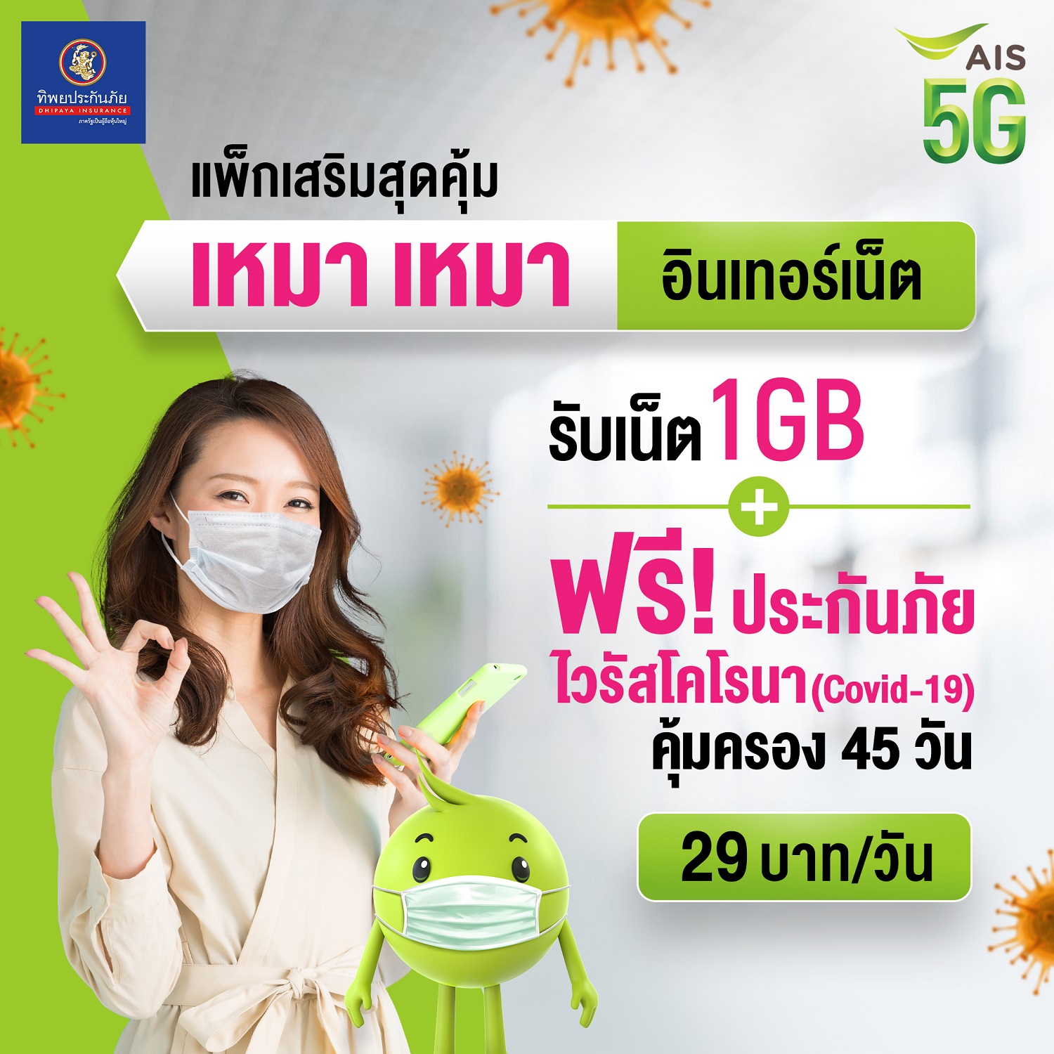 · ลูกค้าปัจจุบัน ที่สมัครแพ็กเสริม เหมา เหมา อินเทอร์เน็ต ราคา 29 บาท ใช้งานเน็ต 1 GB นาน 24 ชั่วโมง ระหว่างวันที่ 24 ธันวาคม 2563 – 28 กุมภาพันธ์ 2564 ลูกค้าระบบเติมเงินและระบบรายเดือน รับสิทธิ์ง่ายๆ กด *777*930# โทรออก จากหมายเลขโทรศัพท์ดังกล่าว โดยความคุ้มครองจะเริ่มต้นในวันถัดไปจากวันที่ลูกค้าสมัครแพ็จเกจ จนถึงวันที่สิ้นสุดความคุ้มครอง 45 วัน (รวมระยะเวลารอคอย 14 วัน) ณ. เวลา 24.00 น. (นับตามเวลาประเทศไทย) รายละเอียดเพิ่มเติม www.ais.co.th/maomaointernet/covid19/
