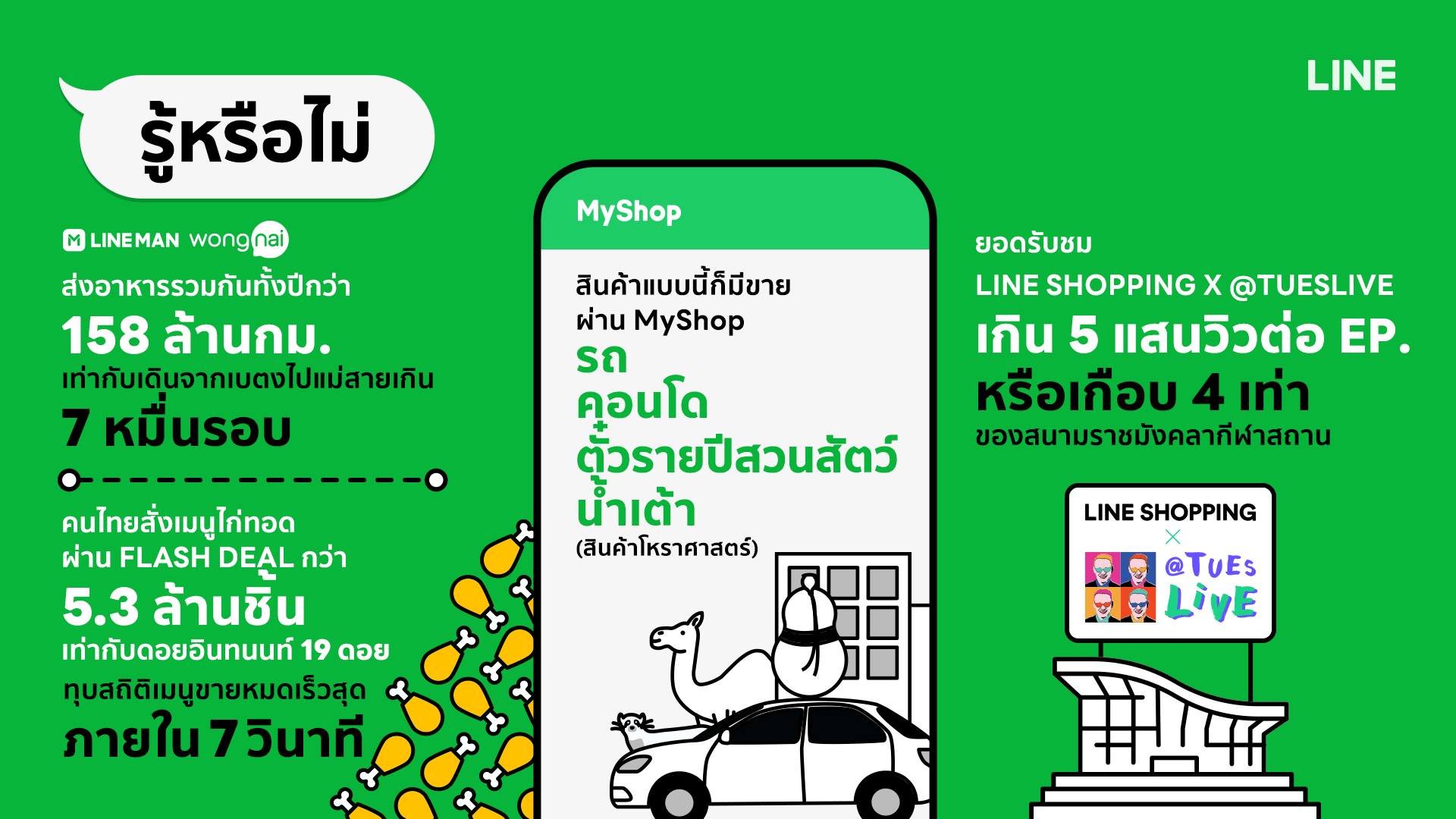 ขณะที่พฤติกรรมการช้อปปิ้งท่ามกลางสถานการณ์ในปีที่ผ่านมา โซเชียลคอมเมิร์ซได้กลายเป็นรูปแบบการช้อปปิ้งที่มาแรง LINE จึงได้จับมือกับ “ป้าตือ” เซเลปสุดปังแห่งเมืองไทย จัดทำ LINE SHOPPING x @TuesLIve รายการไลฟ์สดขายของแนวใหม่ที่ผสานรายการวาไรตี้ ความเอนเตอร์เทนท์เข้าไว้ด้วยกัน เพื่อช่วยเหลือทั้งผู้ประกอบการและผู้บริโภคเมืองไทยให้สามารถซื้อขายของได้อย่างสนุก มีสีสันในสภาวะตึงเครียดของการแพร่ระบาด จนได้กระแสตอบรับดีเกินคาด ด้วยยอดผู้ชมเกิน 5 แสนวิวทุกตอน หรือเกือบ 4 เท่าของที่นั่งผู้ชมในสนามราชมังคลากีฬาสถานเลยทีเดียว!