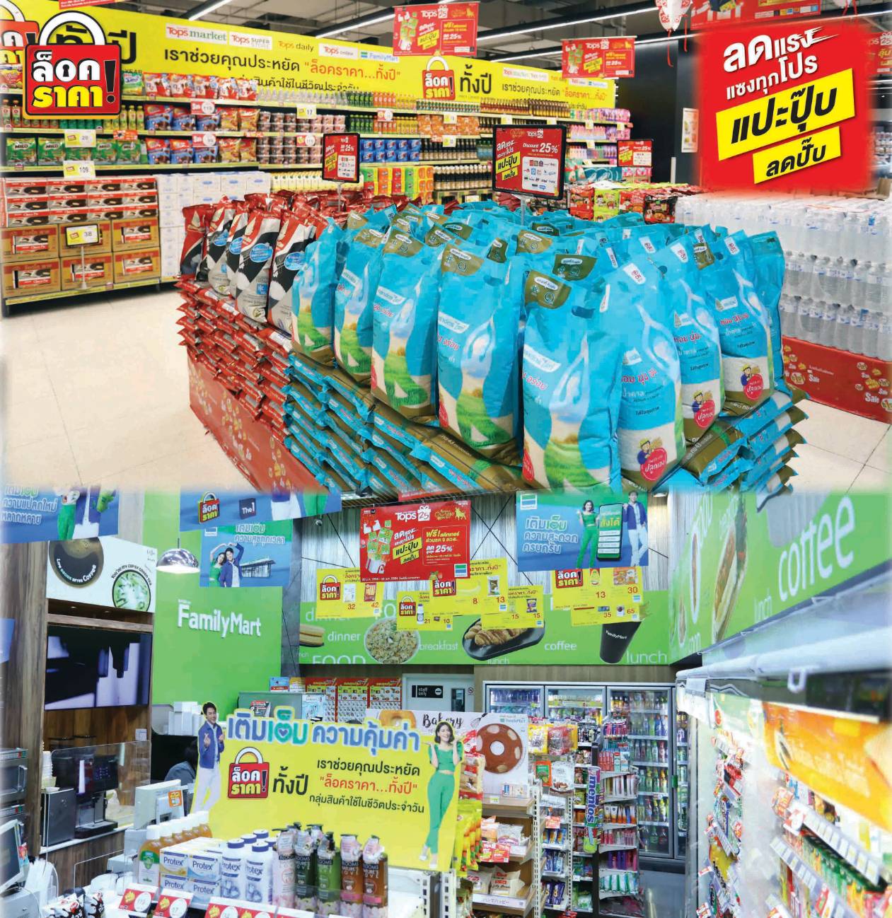 · ล็อคราคาสินค้าช่วยผู้บริโภคตลอดปี ท็อปส์และแฟมิลี่มาร์ท ริเริ่มจัดล็อคราคาสินค้าครั้งแรกเมื่อเดือน