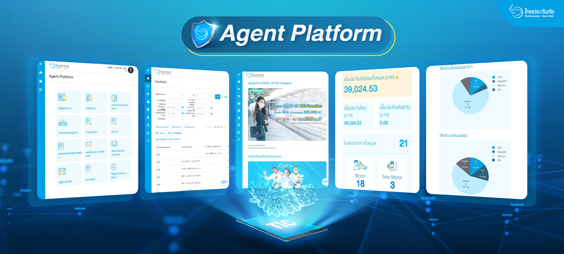 27 มกราคม 2564 : หลังจากที่ TIC ไทยประกันภัย เอาใจลูกค้าและผู้บริโภคชาวไทยมาอย่างหนักตลอดปี 2563 ผ่านการพัฒนาและสร้างสรรค์ประสบการณ์ใหม่ๆ ที่ตอบโจทย์ยุคดิจิทัล วันนี้ TIC เอาใจคนในบ้านอย่างตัวแทนและนายหน้ากันบ้าง ด้วยนวัตกรรมล่าสุด TIC Agent Platform ที่ทาง TIC Lab ห้องแล็บนวัตกรรมปล่อยออกมา เป็นแพลตฟอร์มออนไลน์ที่ช่วยให้การทำงานของนายหน้าและตัวแทนเป็นเรื่องง่ายและสะดวกมากขึ้น ไม่ต้องเข้าไปที่สาขาหรือสำนักงานใหญ่ ดำเนินธุรกิจได้ง่ายๆ แค่ปลายนิ้ว โดยวันนี้ TIC Agent Platform ได้เปิดใช้งานอย่างเต็มรูปแบบ มีตัวแทนและนายหน้าลงทะเบียนเข้าใช้มากกว่า 500 คนทั่วประเทศแล้ว